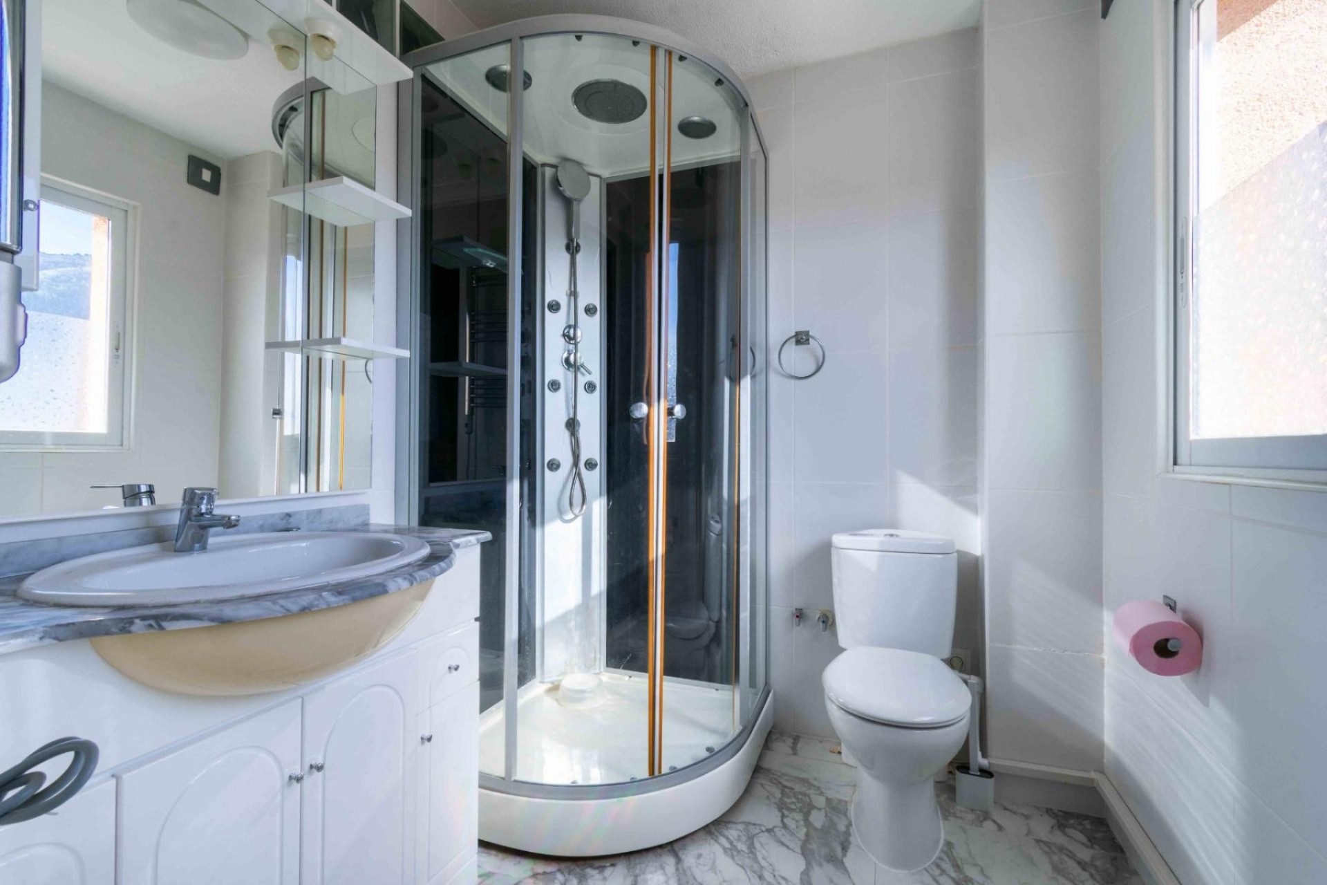 Dieses helle und gepflegte Apartment mit 3 Schlafzimmern im Dachgeschoss wurde 2015 vollständig renoviert und liegt nur 460 Meter vom Strand von Albir entfernt. Das lichtdurchflutete Wohn-Esszimmer mit offener Küche führt auf eine großzügige Terrasse mit freiem Blick auf die Berge. Es verfügt über zwei gut beleuchtete Schlafzimmer, eines davon mit eigenem Bad, sowie ein vielseitiges Büro, ideal zum Arbeiten oder Studieren von zu Hause aus. Modernes Design und hochwertige Ausführungen sorgen für maximalen Wohnkomfort. Supermärkte, Apotheke, öffentliche Verkehrsmittel und Freizeiteinrichtungen befinden sich in unmittelbarer Nähe – perfekt für Familien und junge Berufstätige.