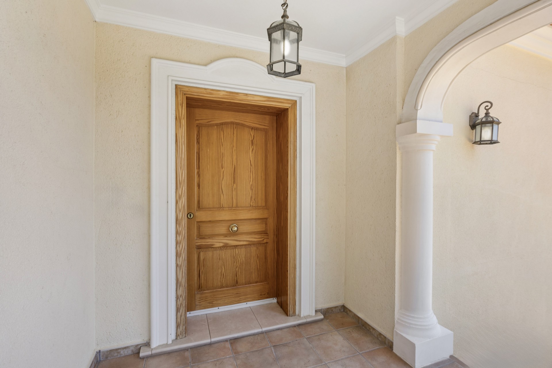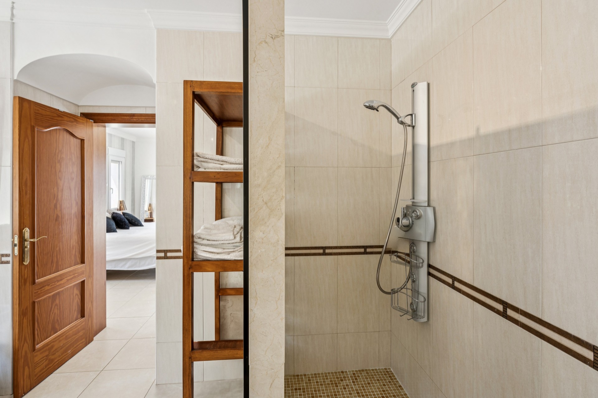 Deze charmante villa in traditionele stijl ligt op een ruim perceel van 1.800 m² in de rustige en privé wijk Senioles van Jávea, op korte afstand van de historische oude stad. Deze woning op het zuidwesten biedt vanaf alle terrassen een panoramisch uitzicht op de Montgó en de vallei en geniet de hele dag van zonlicht. De villa is fris geschilderd in fris wit door het hele interieur en voelt nu nog lichter, helderder en uitnodigender aan, wat de aantrekkingskracht en het gevoel van ruimte van het huis versterkt. De villa is gebouwd en onderhouden door één eigenaar en is verdeeld over drie niveaus. Op de begane grond vindt u een grote garage, een overloopzwembad van 10x5 meter en een zonnig solarium. Er is ook potentieel om een extra onderbouw van 200 m² te ontwikkelen, ideaal voor gastenverblijf of een recreatiegebied. Het hoogste niveau beschikt over een overdekte parkeerplaats met een pergola en een uitnodigende inkomhal verlicht door een dakraam. De woonkamer is voorzien van een gezellige open haard en komt uit op een ruime omhullende naya met vrij uitzicht op de Montgó. De eetkamer en de volledig uitgeruste keuken bieden beide toegang tot het achterterras, waar zich een barbecue en een wasruimte bevinden. Op deze verdieping bevinden zich ook drie slaapkamers en drie badkamers, waaronder een royale master suite met een inloopkast en een eigen badkamer. Boven biedt de hoofdslaapkamer ingebouwde kasten, een zithoek, een grote badkamer met hydromassagebad en aparte douche, en twee privéterrassen met een uitzonderlijk uitzicht. De woning beschikt over vloerverwarming en warme/koude airconditioning in alle kamers. Extra hoogtepunten zijn onder meer een grote gasinstallatie, voldoende parkeergelegenheid voor meerdere voertuigen en drie natuurlijke waterputten, die zorgen voor een duurzame en gratis watervoorziening. #ref:ENJ-VI-00120-D