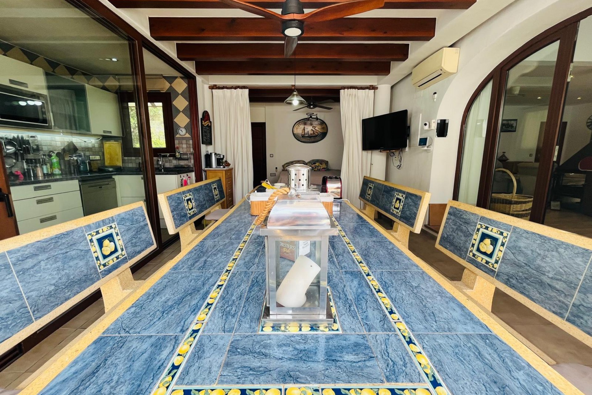 Gelegen in de rustige en prestigieuze wijk Pinar de Advocat-Cometa van Moraira, biedt deze ruime villa op het zuiden de perfecte balans tussen mediterrane charme, modern comfort en een prachtig uitzicht op zowel de zee als de stad beneden. De villa ligt op een royaal perceel van 1.107 m², beslaat in totaal 329 m² en beschikt over 7 slaapkamers en 5 badkamers - ideaal voor grote gezinnen, het ontvangen van gasten of zelfs als vakantieverblijf. Het huis is in uitstekende staat en zorgvuldig uitgerust met hoogwaardige voorzieningen, wat zorgt voor een ontspannen en luxueuze levensstijl. De uitgestrekte leefruimte omvat zowel een open als een aparte keuken, een gezellige open haard, een kelder, een wasruimte en een bijkeuken. Buiten nodigen een privétuin en meerdere terrassen u uit om te genieten van de zon van de Costa Blanca, terwijl een zwembad met jacuzzi en een ingebouwde barbecue de perfecte setting creëren voor buitenentertainment. Comfort is het hele jaar door gegarandeerd dankzij airconditioning, centrale verwarming, zonnepanelen en een geavanceerd domoticasysteem. Extra functies zijn onder meer een garage, overdekte parkeerplaats, berging, ingebouwde kasten en robuuste beveiligingselementen zoals dubbele beglazing, elektrische rolluiken, een afgeschermde voordeur en een volledig alarmsysteem. Gelegen op slechts 2,5 km van de zandstranden van Playa del Portet en binnen handbereik van de levendige jachthaven, restaurants en boetieks van Moraira, combineert deze villa natuurlijke schoonheid met alledaags gemak. De luchthaven van Alicante ligt op slechts een uur rijden, waardoor het een ideale ontsnapping is voor internationale kopers of een slimme investering in een van de meest gewilde bestemmingen van de Costa Blanca. Mis uw kans niet om dit opmerkelijke huis in Moraira te bezitten, waar uitzicht op zee, ruimte en sereniteit naadloos samenkomen. #ref:ENJ-VI-00169-D