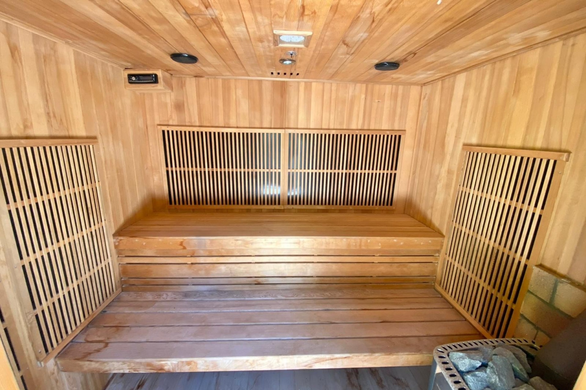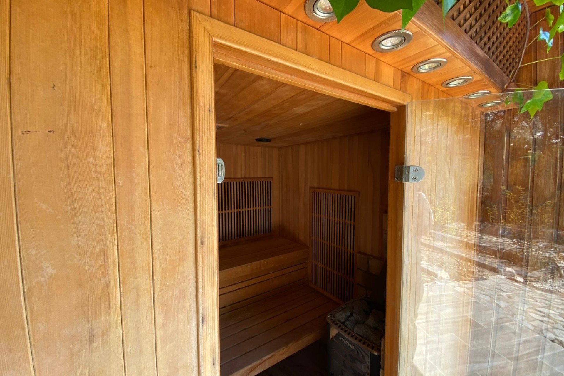 Przestrzenie zewnętrzne zaprojektowano tak, aby w pełni odzwierciedlały śródziemnomorski styl życia. Prywatny basen, sauna i wydzielone miejsce do grillowania tworzą idealne miejsce do relaksu lub spotkań z rodziną i przyjaciółmi. Oprócz garażu, na terenie posesji znajduje się dużo miejsc parkingowych dla trzech do czterech samochodów.