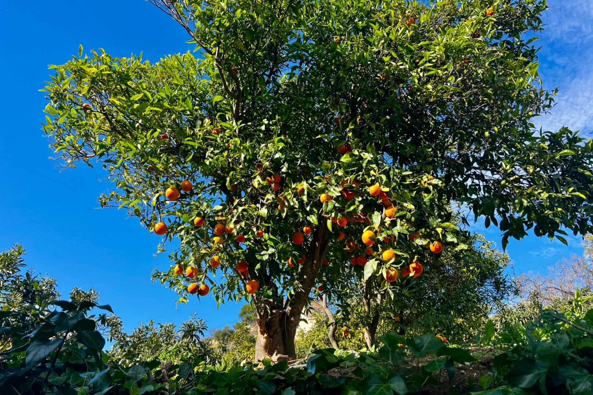 The outdoor areas are designed for relaxed Mediterranean living, featuring a private swimming pool, barbecue area, private parking, a patio with fruit trees, and open mountain views that provide a sense of peace, light and space.