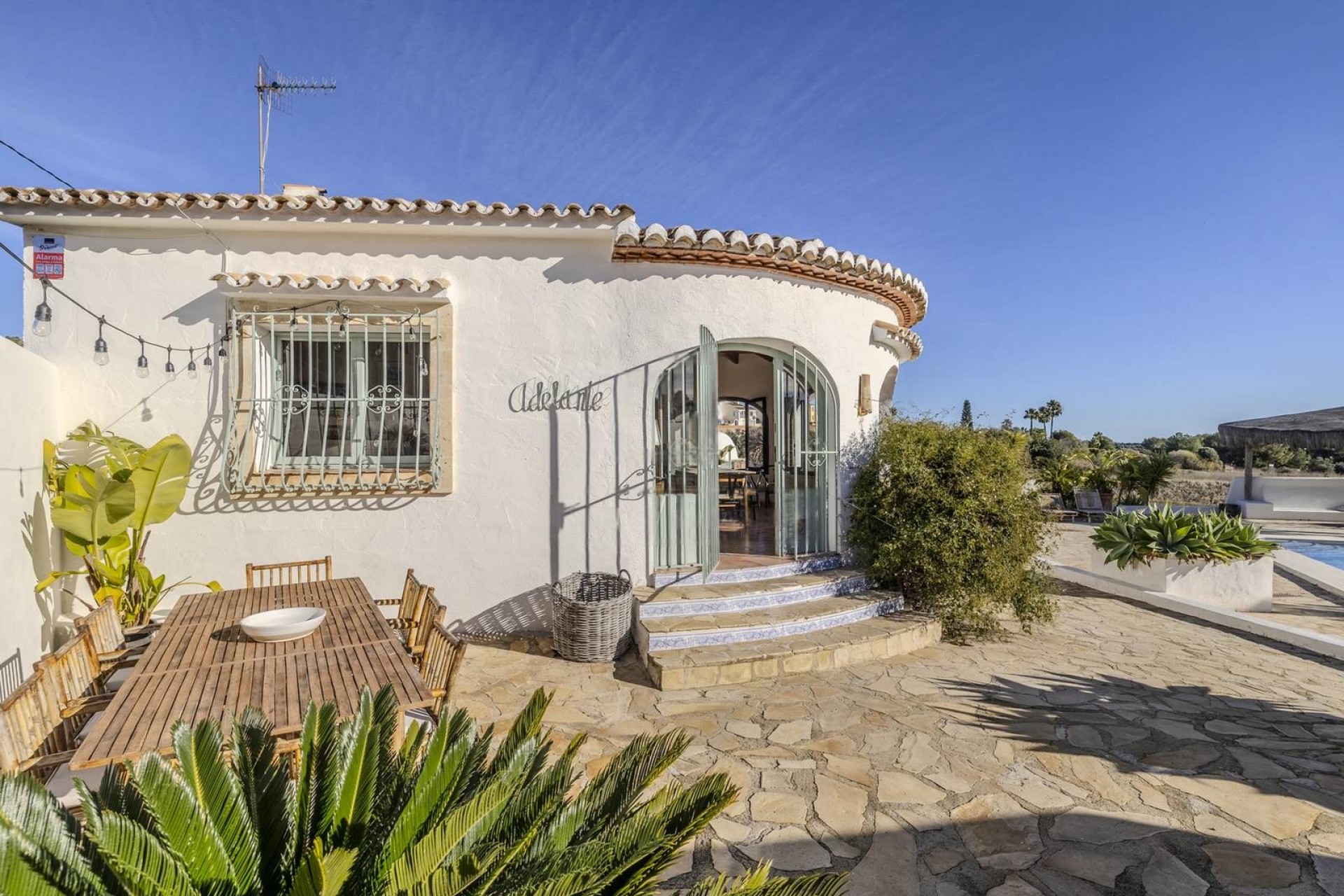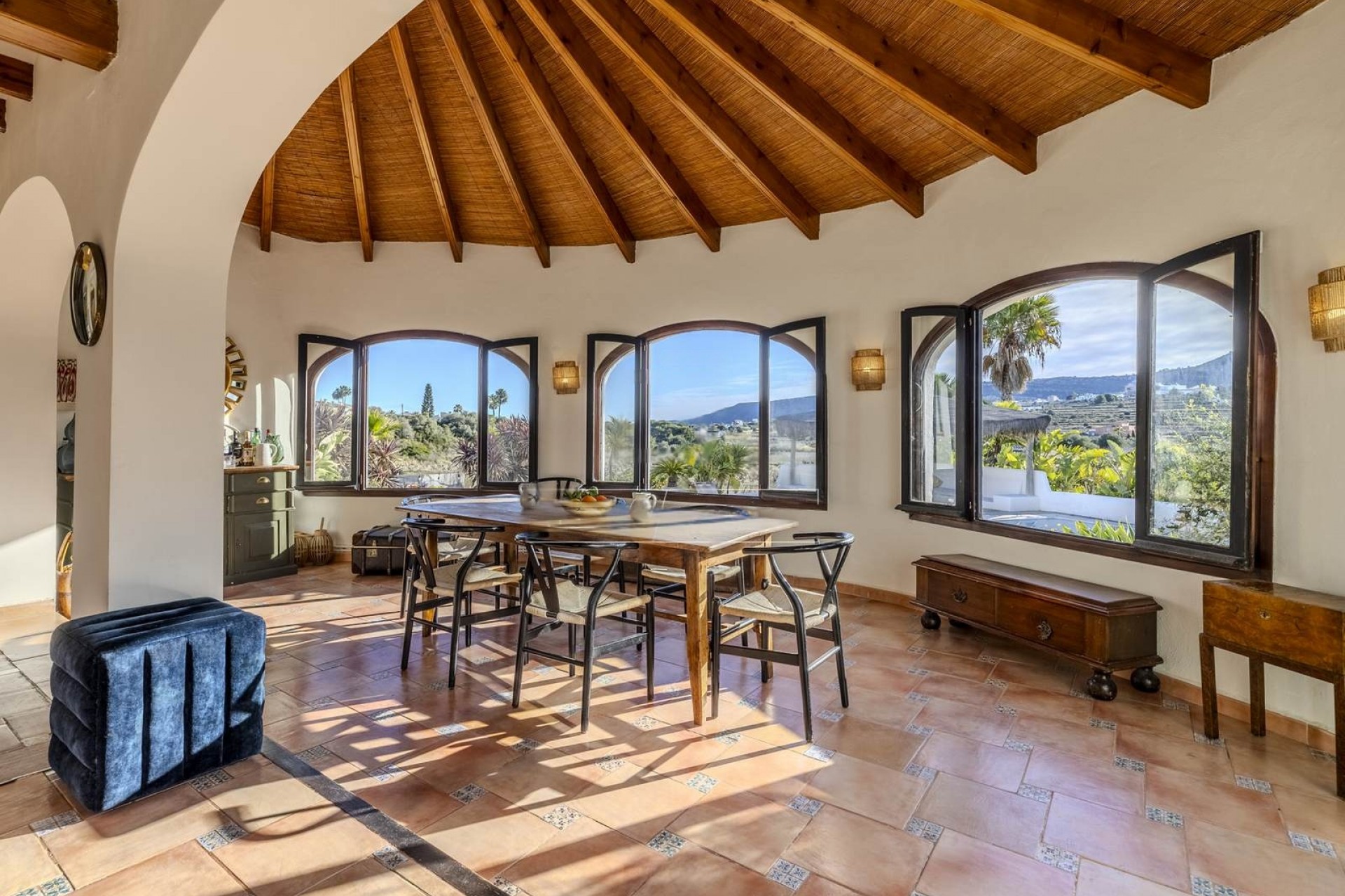 Welcome to this unique country house, located right on the outskirts of Jávea. Surrounded by rolling farmlands, tropical plants and an oasis of tranquillity, this beautiful finca offers the ultimate feeling of freedom and privacy - and that just a few minutes' drive from the beach, village facilities and international schools. A house with soul, history and character This finca is more than 100 years old and exudes authenticity thanks to original details such as the warm tiled floor and an attractive fireplace. It is a house with soul, in which the charm of the past blends perfectly with the comfort of today. The spacious living room is directly connected to an open naya (covered terrace), allowing indoor and outdoor living to merge seamlessly. The kitchen is spacious and practically furnished - ideal for culinary evenings with friends or family. Four bedrooms The house currently has four bedrooms and 3 bathrooms which makes the house extra flexible and family-friendly. The master bedroom and the guest room have their own en-suite bathroom, while the remaining 2 bedrooms share a third bathroom. Many extras - for guests, storage and relaxation Next to the main residence you will find a separate laundry room, a particularly spacious basement with a lot of potential (think of a hobby room, wine cellar or gym) and an independent guest studio with private bathroom - perfect for guests or as a rental option. Outdoor living at its best The legalised swimming pool forms the radiant centrepiece of the spacious plot, surrounded by lush gardens with palms, Mediterranean plants and fruit trees. Right next to the pool is an attractive Ibiza-style chill-out corner - your private retreat for long summer evenings, siestas or cosy drinks. Other advantages: The plot is fully fenced Electric entrance gate Parking on site for two cars Absolute peace and privacy, without being isolated Ideal combination of rustic living with modern conveniences Be enchanted by the charm, history, tranquillity and space of this more than 100-year-old finca full of character. This is not a standard home - this is a lifestyle. Contact us today to arrange a viewing. Dream, experience, and enjoy... of the real Spain. #ref:ENJ-VI-00328-D