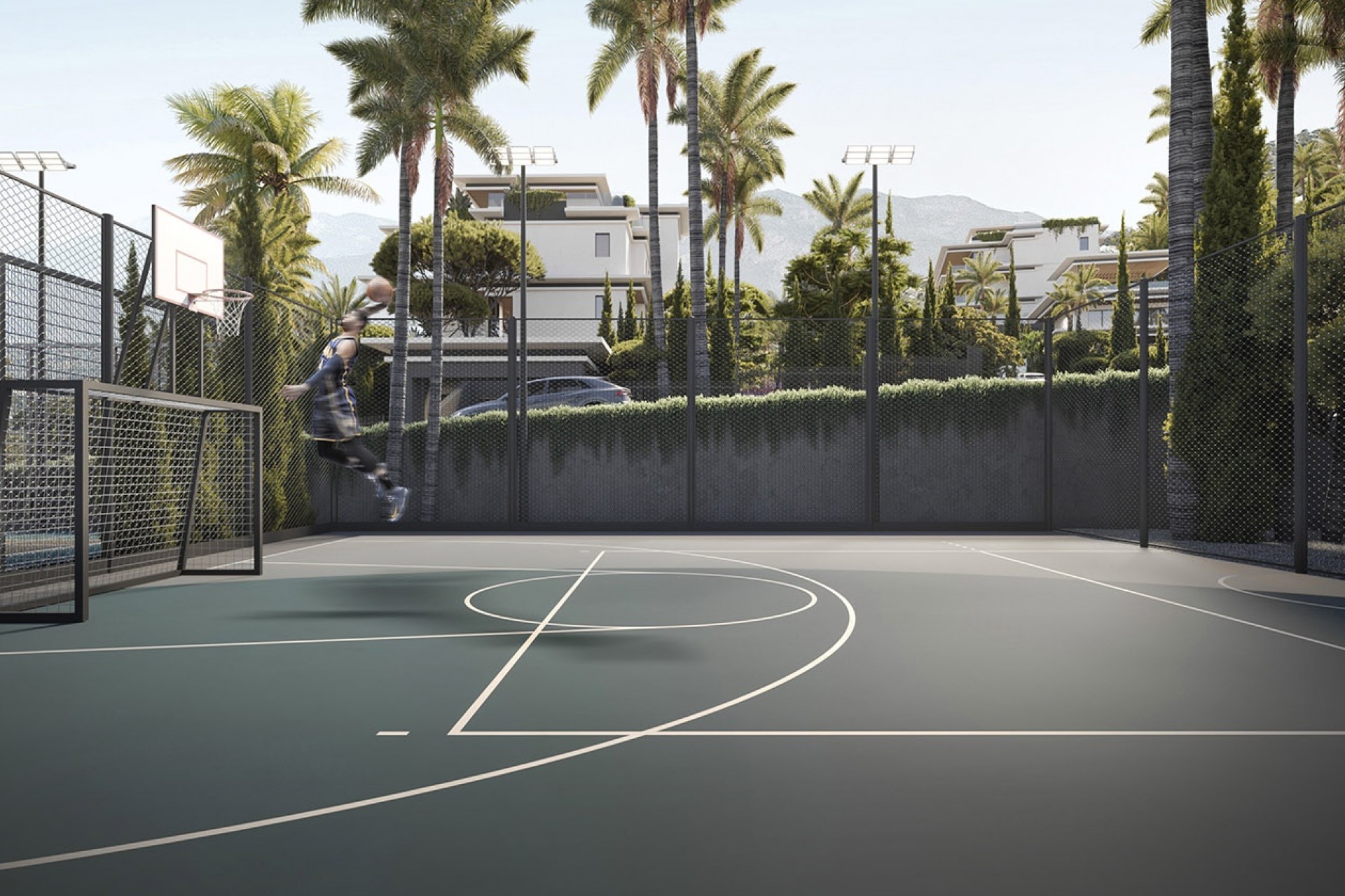 This residential complex in Mijas offers a variety of common areas designed for the enjoyment of all residents. It features a paddle court, landscaped areas, a community gym, swimming pool, solarium, and a children's playground. These facilities promote an active and social lifestyle, providing spaces for exercise, relaxation, and entertainment for the whole family.