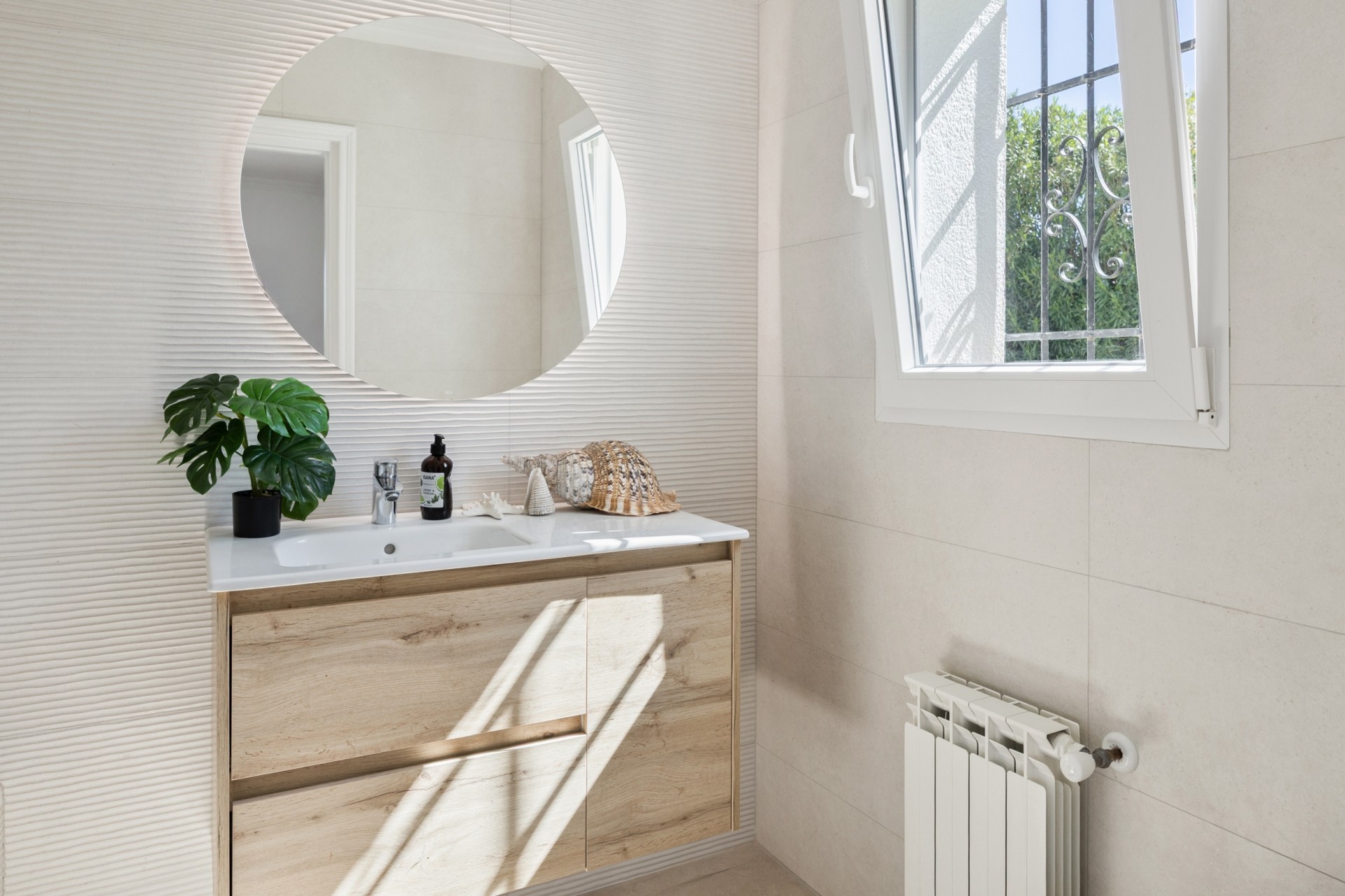 Set against the impressive backdrop of Montgó, this beautifully updated villa offers a rare combination of space, privacy, and effortless Mediterranean living. Positioned on a generous south-facing plot of nearly 2,000 m² in the desirable Montgó Valls area of Jávea, the property enjoys sunshine throughout the day and a calm, residential setting just a short drive from local amenities. The home has been thoughtfully redesigned to create a seamless, single-level living experience, making it both practical and inviting. From the moment you enter through the electric gate, the sense of space is immediately apparent, with ample parking and well-kept gardens framing the property. Outdoor living takes centre stage here. The expansive terrace surrounds a large private pool and provides multiple areas to relax, dine, and entertain. Whether enjoying long lunches in the shaded dining area or unwinding by the pool, the setting is enhanced by sweeping views of the Montgó mountain and the surrounding countryside. A separate outdoor bathroom adds convenience for poolside living. Inside, the villa presents a fresh, contemporary interior with a warm and welcoming feel. Natural light flows through the main living spaces, where the lounge and dining area connect effortlessly with the outdoor terraces, creating an easy indoor-outdoor lifestyle. The kitchen has been finished to a high standard, featuring modern appliances and a central island designed for both cooking and casual gatherings. From here, there is access to an additional rooftop terracean ideal spot to enjoy open views or evening sunsets. The property offers four comfortable double bedrooms and three stylish bathrooms, all finished with a clean, modern aesthetic. Combining a prime location, generous proportions, and move-in-ready condition, this villa is perfectly suited as a permanent residence or a refined holiday retreat in one of Jávea's most sought-after residential areas. #ref:ENJ-VI-00404-D